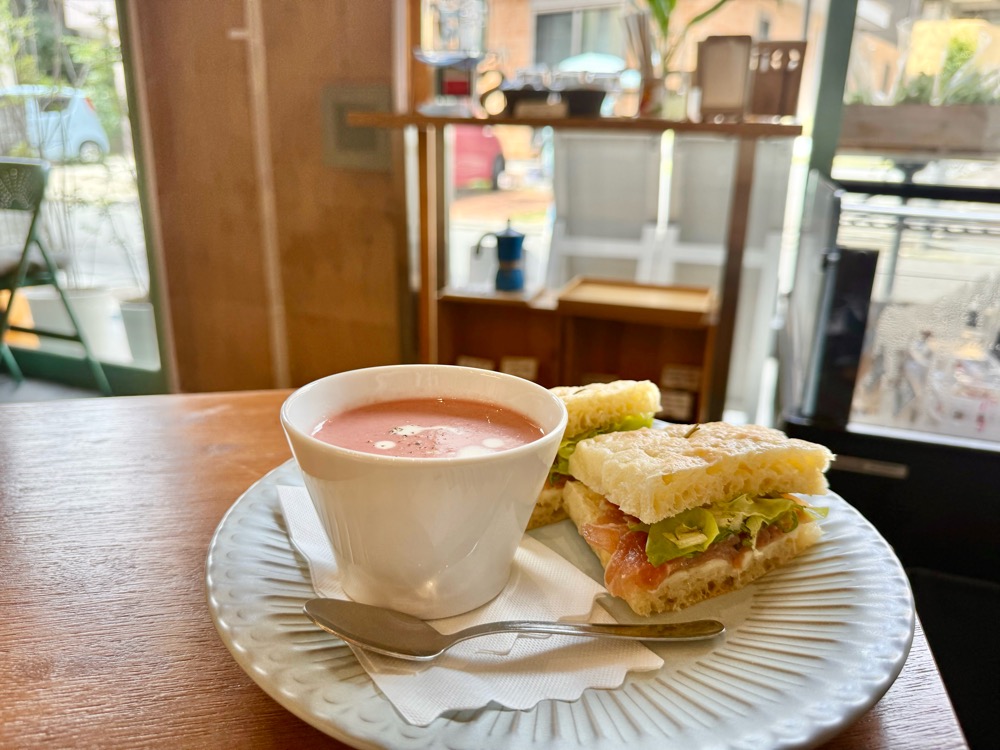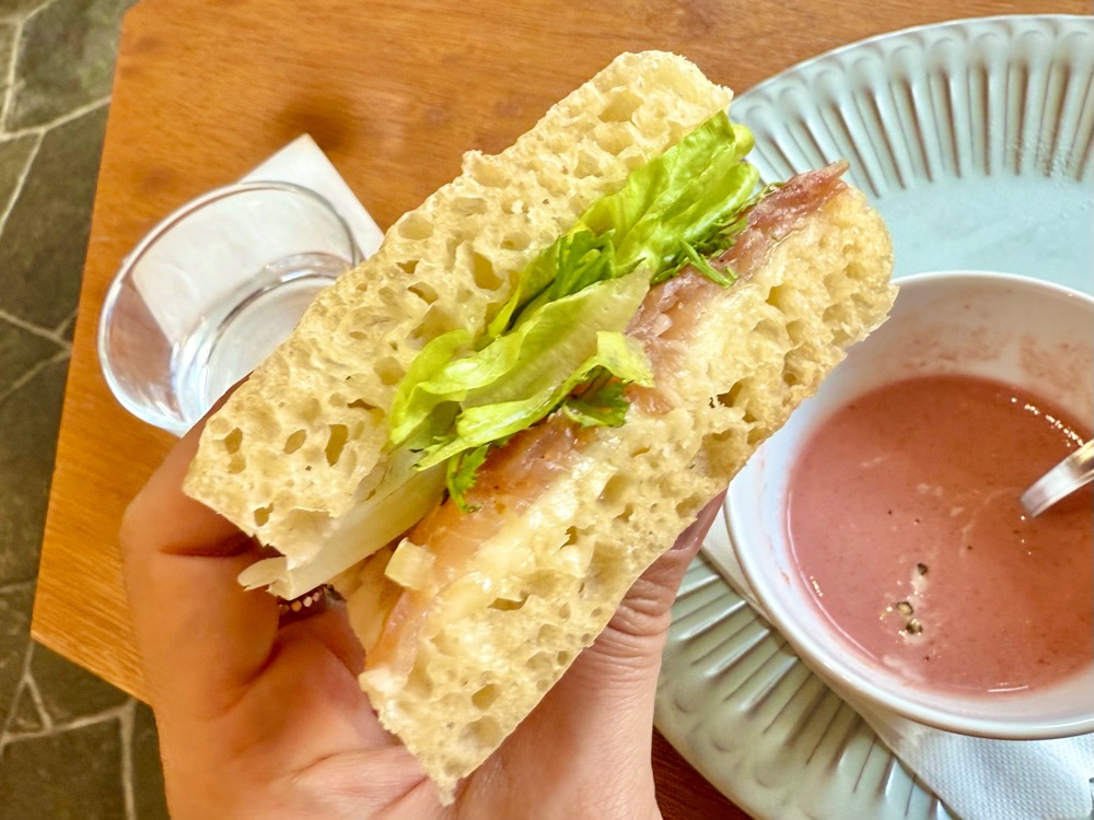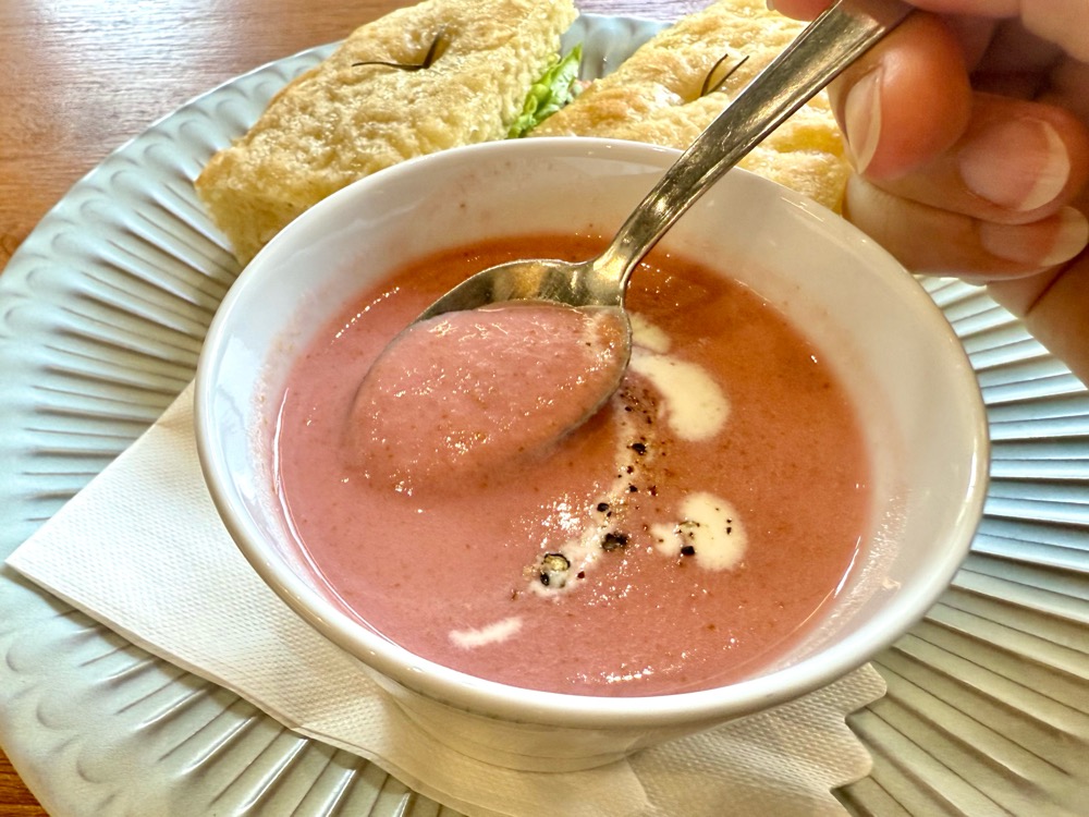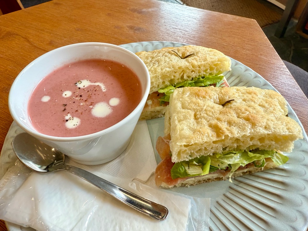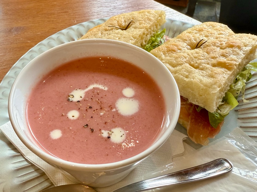 シェフがオススメしてくれたビーツのスープとパニーニを注文♪