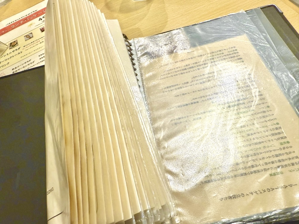 席に着いてまず驚いたのが、分厚いメニュー冊子のページ数!