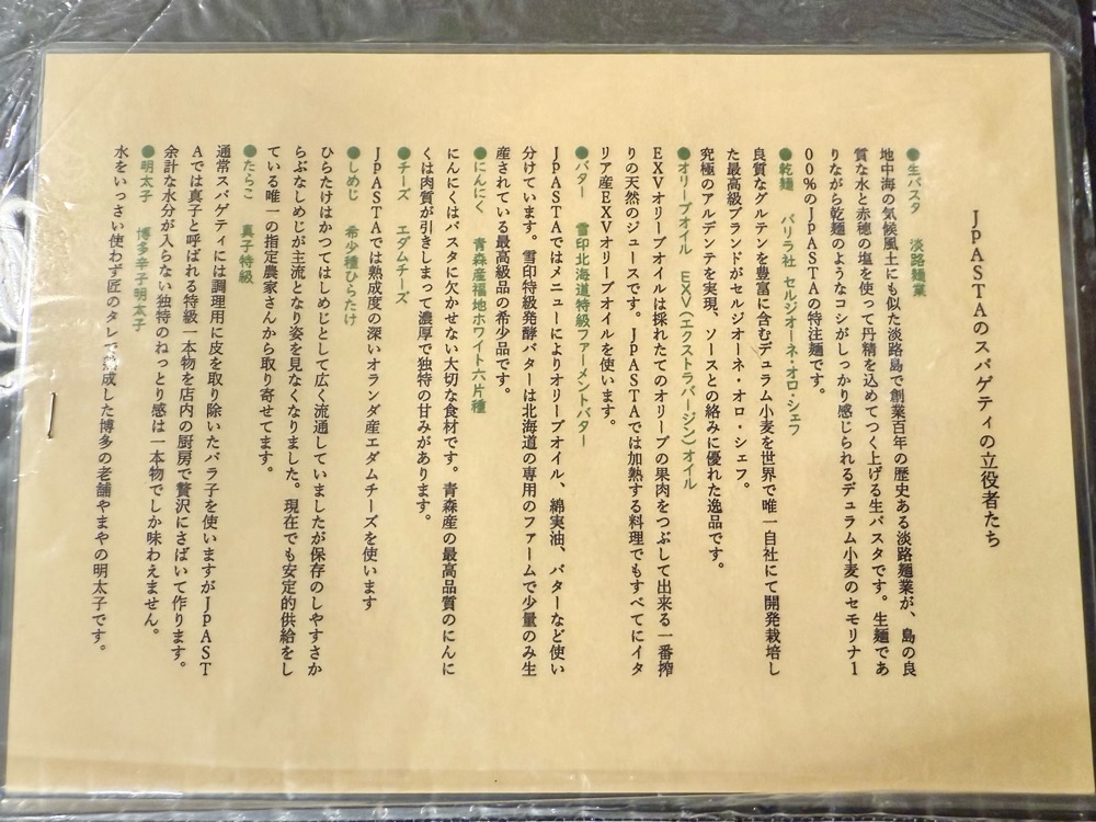 メニューのラストに、J PASTAのこだわりが詰まった1ページを発見!
