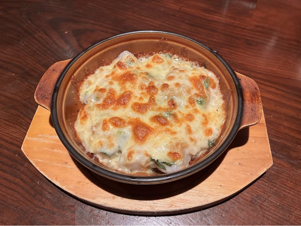 里芋とチーズ異色コラボのネギみそ焼きに、箸休めのガーリックポテトと居酒屋系メニューを注文。