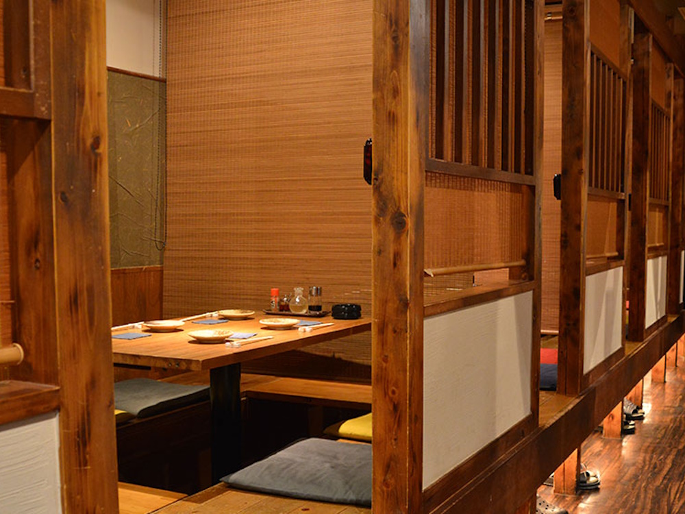 テーブル席の他、お座敷に掘りこたつの仕切られた空間は、仲間と食を囲むのに最適。