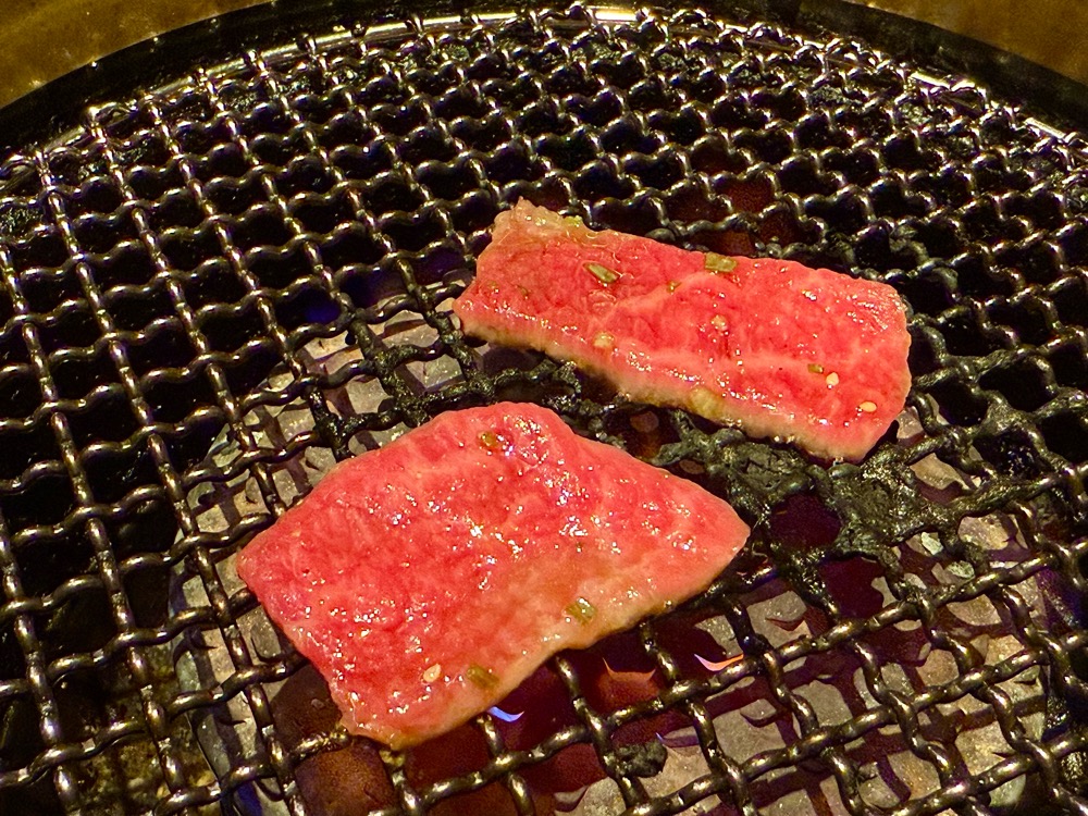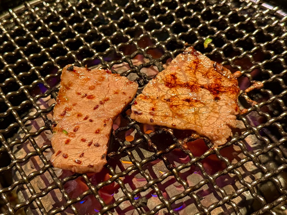 お店の方の火の調整を終えて、いざ焼き始めます!この臨場感とワクワクが焼肉の醍醐味ですね。