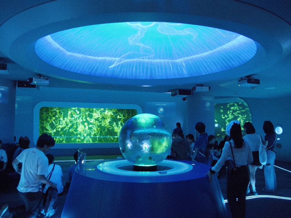 わたしたちが行ったときには、ちょうどクラゲショーの時間でした。海月の宇宙という、プロジェクションマッピングを使ったショーで、とても癒されました。
