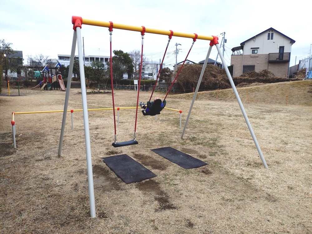 そして、3つ目がみんな大好きな遊具エリアです。こちらには、ブランコと鉄棒と複合遊具があります。