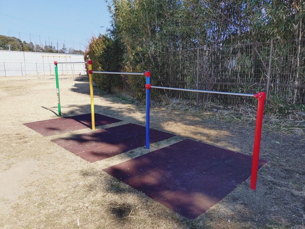 小さいお子さんがぶら下がったり、小学生が前回りや逆上がりの練習をしたりできるのはもちろん、大人でも使用できる高さです。
