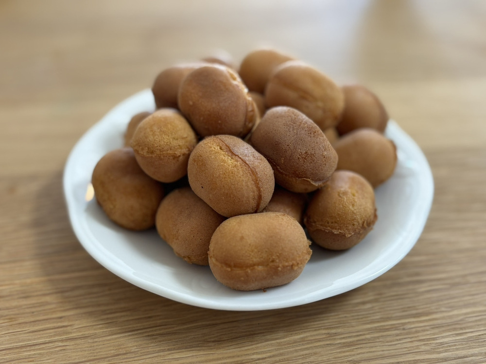 一般的なベビーカステラとはひと味もふた味も違い、しっかりとした弾力としっとり感があり、一口食べた瞬間に「え、なにこれ!おいしい!」と家族全員で顔を見合わせるほど衝撃的でした。